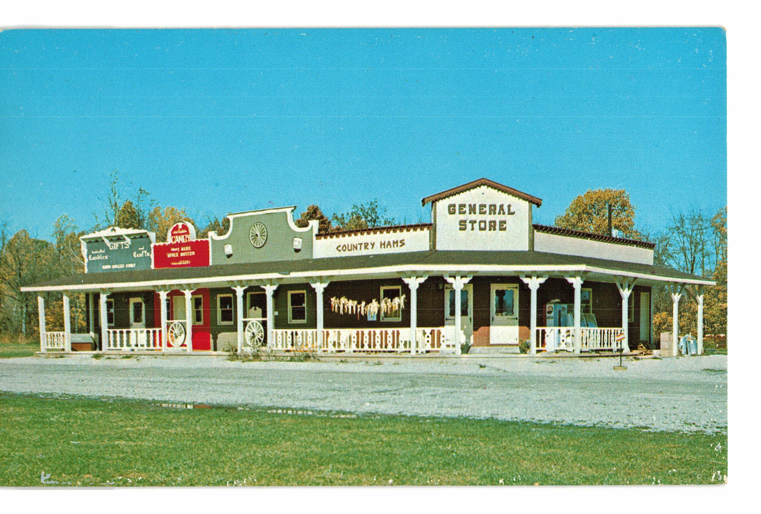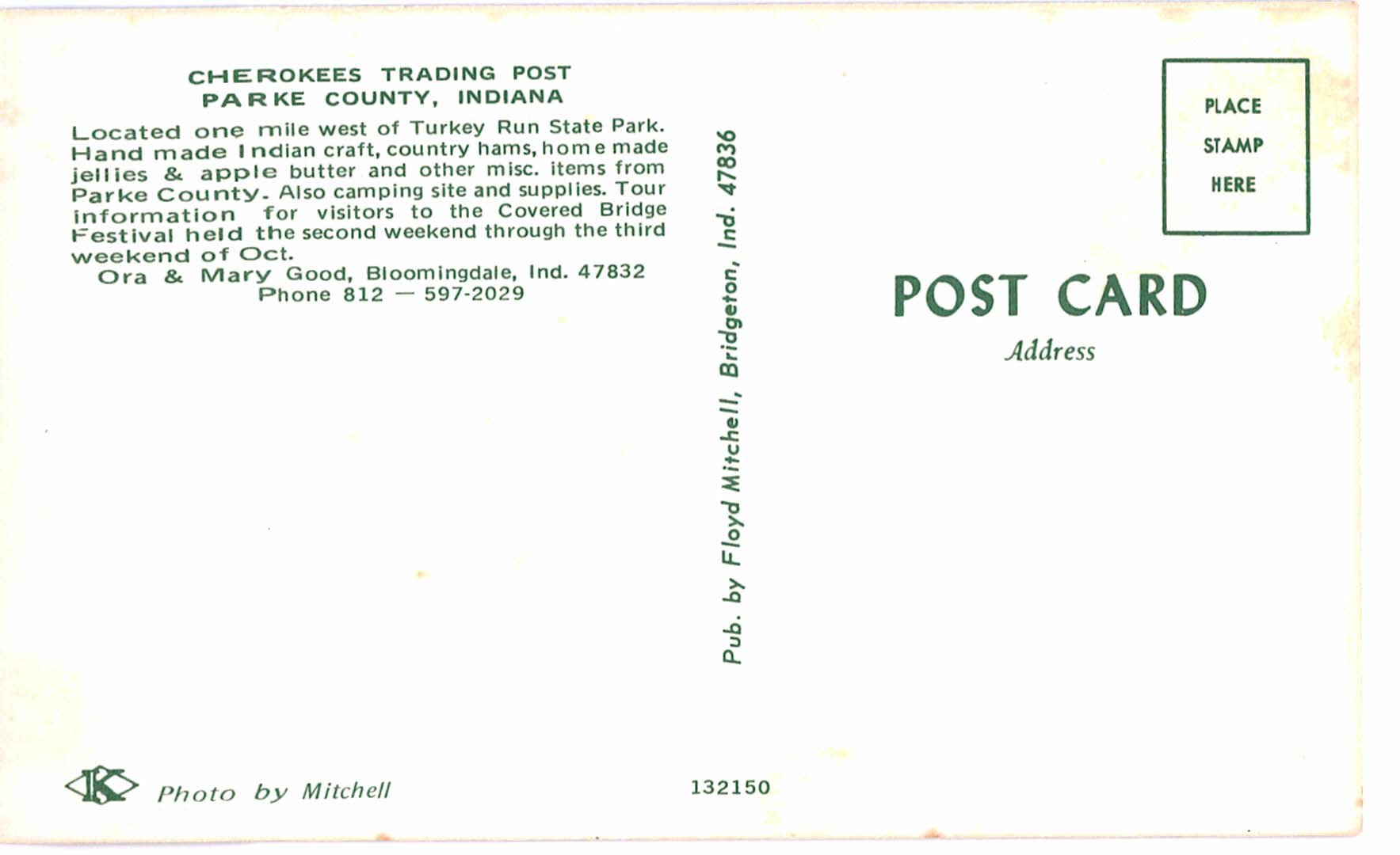 Chrome Postcard. Cherokees Trading Post, Parke County, Indiana. Ora and Mary Good, Bloomingdale, IN.
