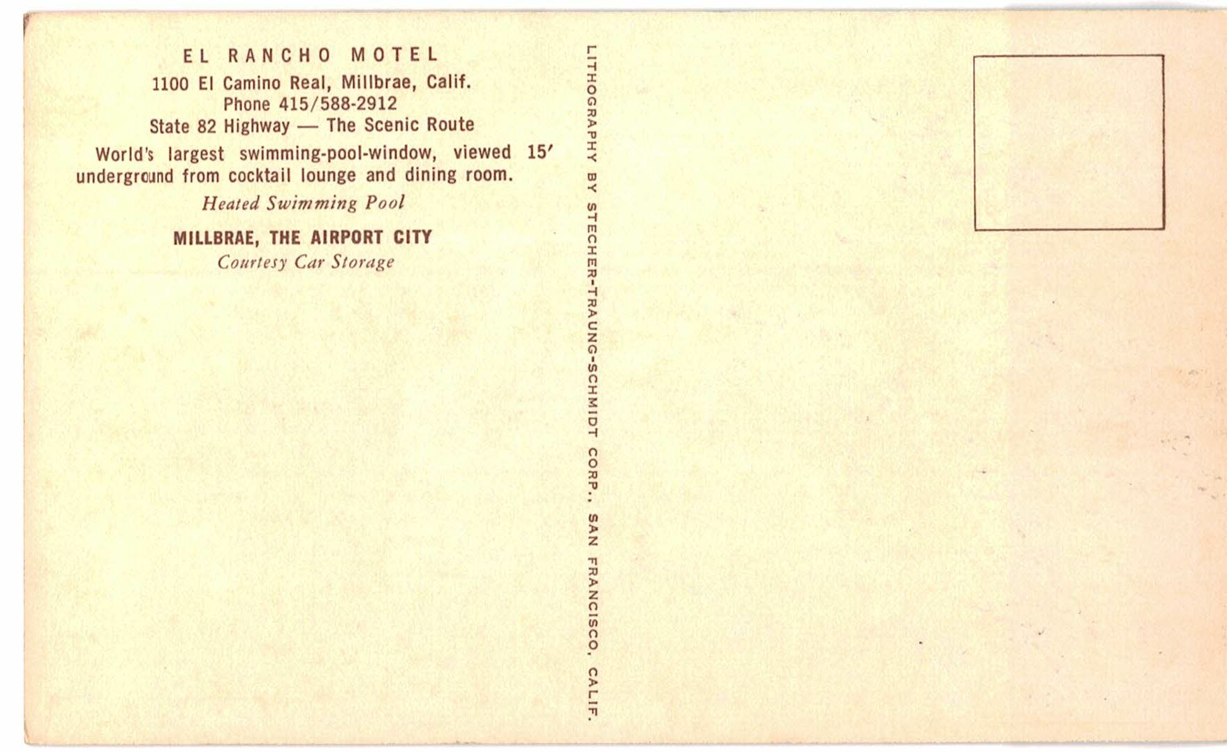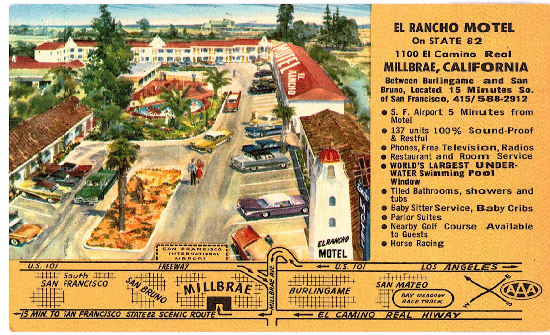 Chrome postcard. El Rancho Motel, Millbrae, California.