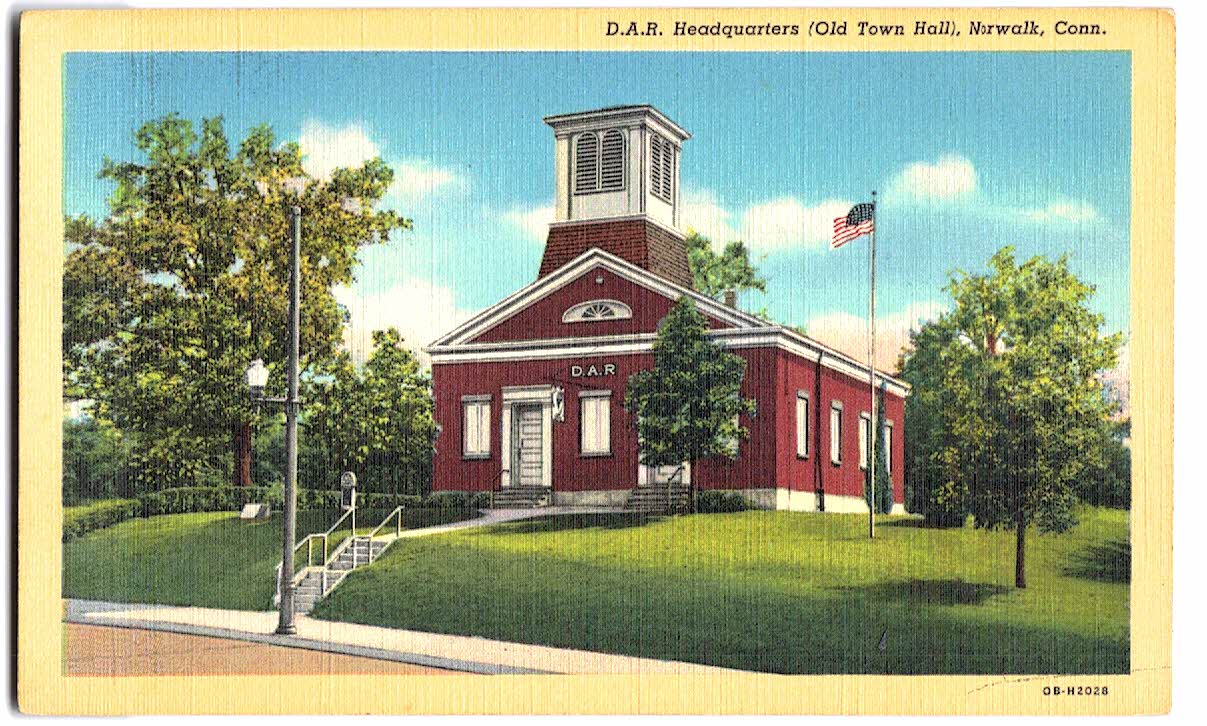 Linen postcard. DAR Headquarters (old town hall), Norwalk, Connecticut.