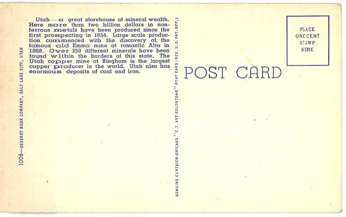 Publisher:  Genuine Curteich-Chicago C T Art-Colortone. Deseret Book Company, Salt Lake City, UT.
