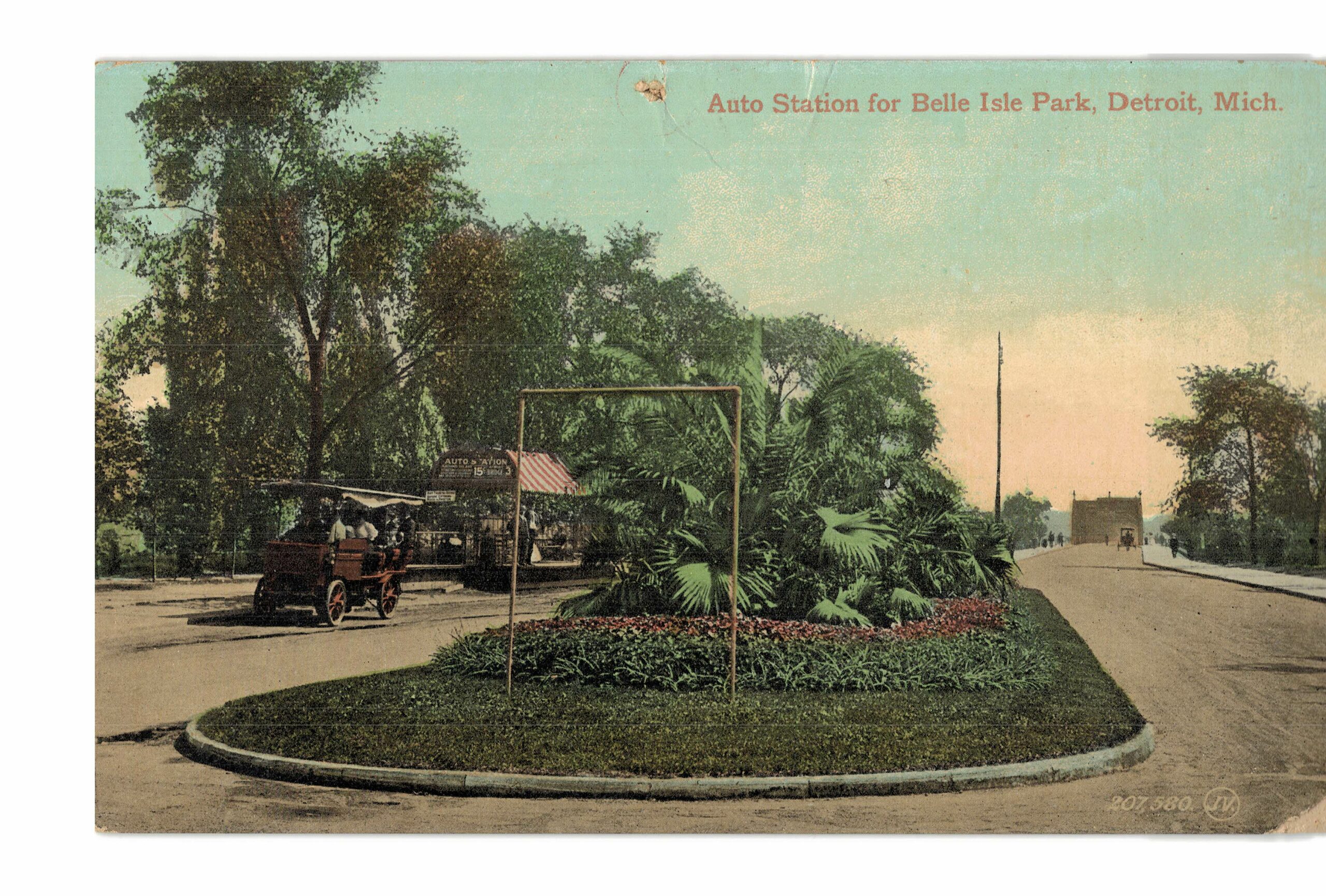 Old postcard. Detroit, Michigan. Auto Station Belle Isle Park.