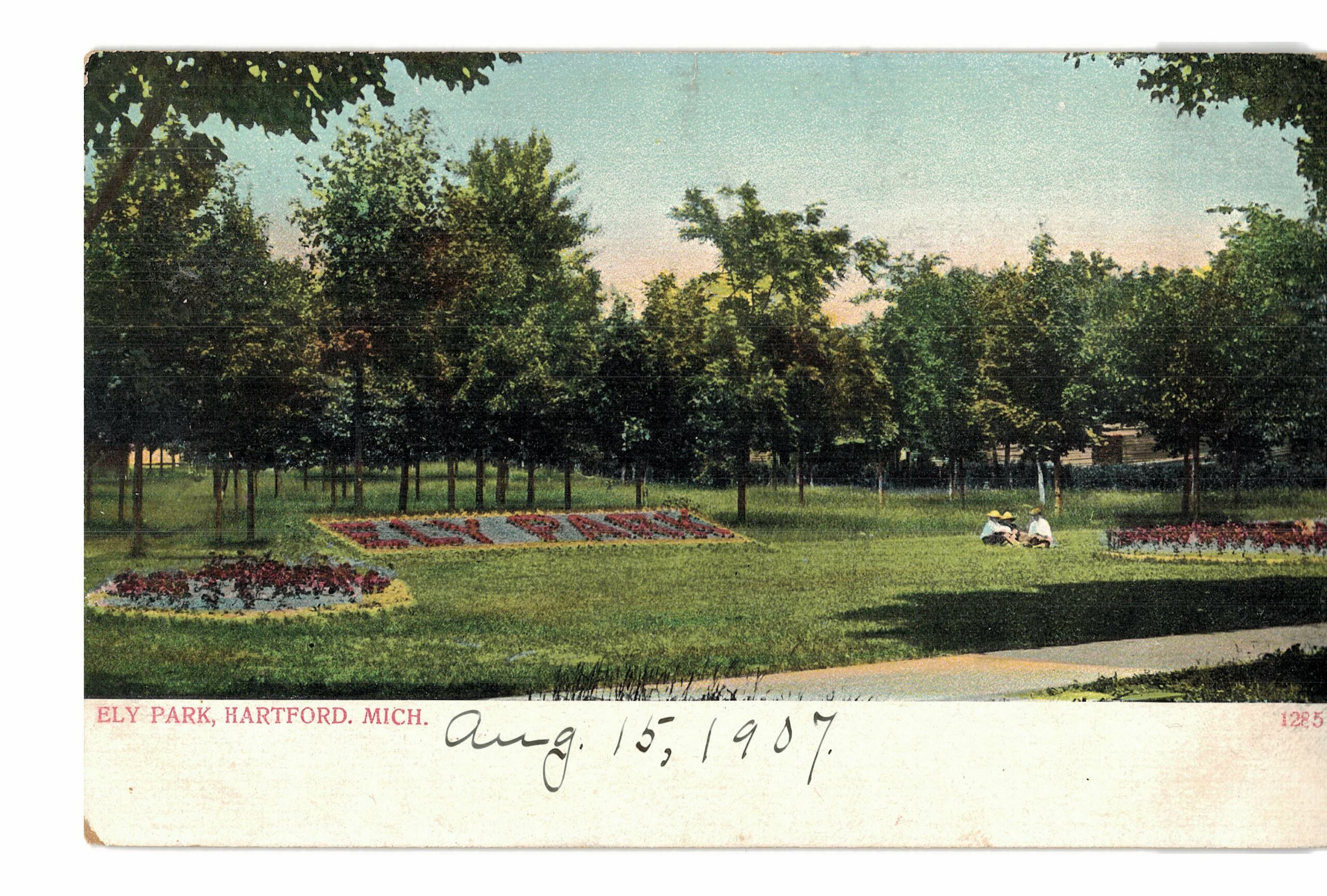 Old postcard. Ely Park, Hartford, Michigan. Undivided back. 1907.