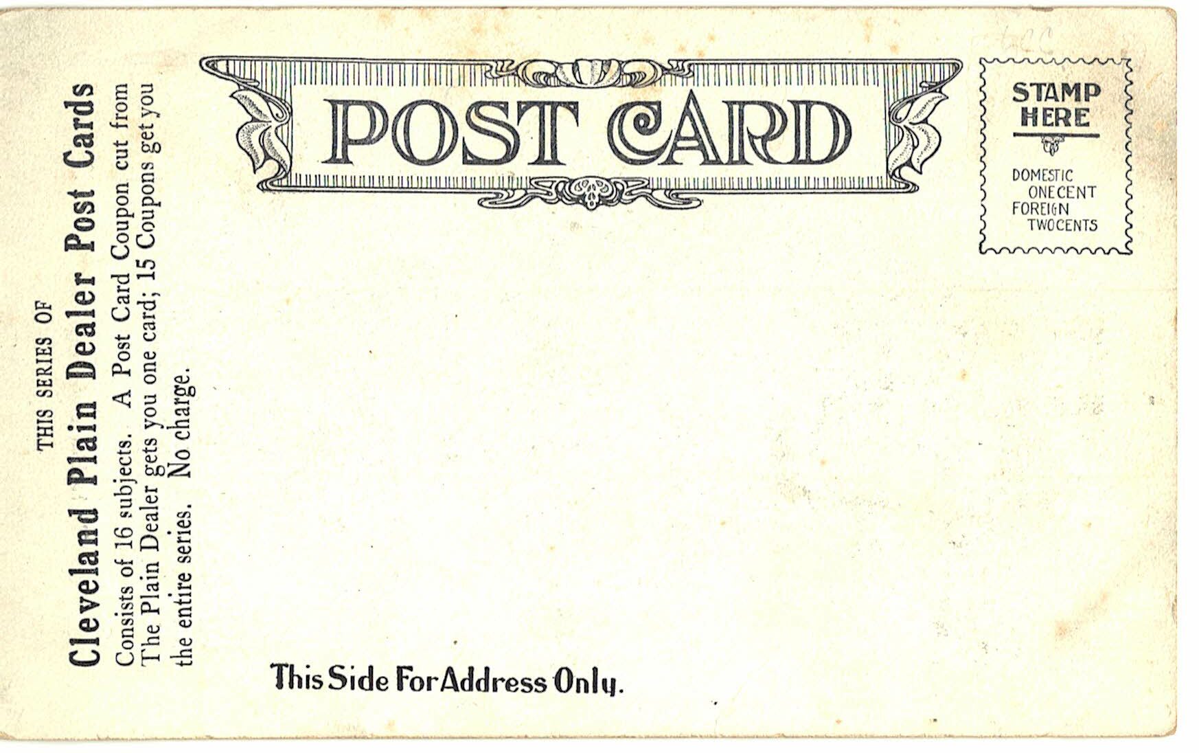 Old postcard. No breakfast complete without one. The Cleveland Plain Dealer, Cleveland, Ohio. Girl reading the newspaper.