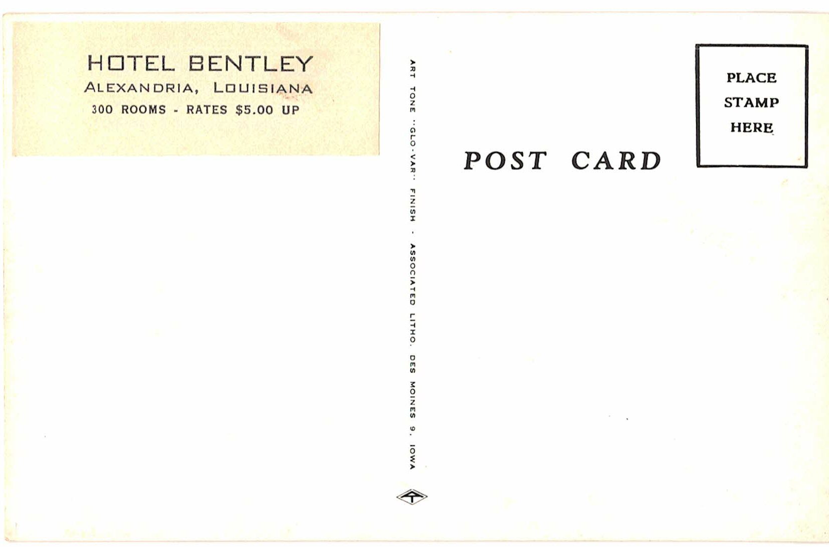 Postcard. Coffee Shop, Hotel Bentley, Alexandria, Louisiana.