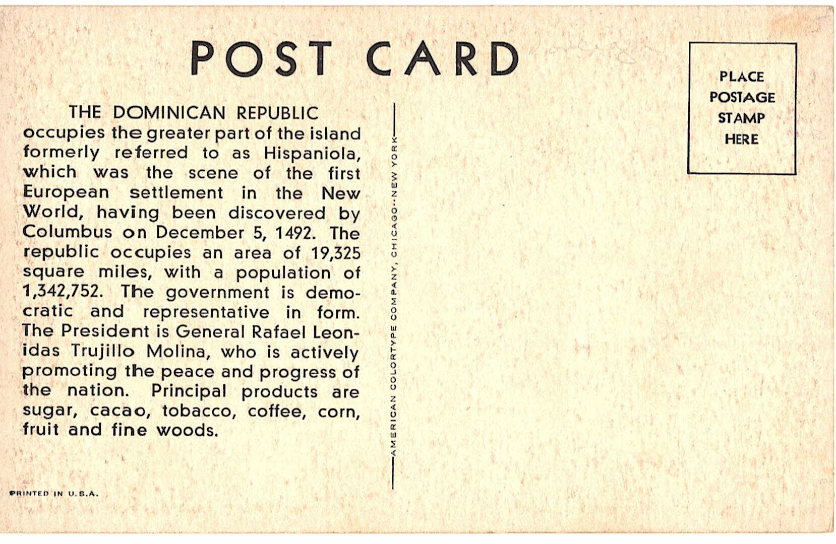White border postcard. Columbus Memorial Light, Dominican Republic, 1933 Chicago World’s Fair, Illinois.
